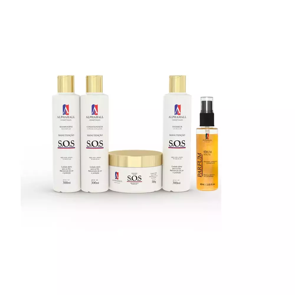O KIT CONTÉM: - Shampoo SOS (300ml): Limpeza suave do couro cabeludo e restauração dos folículos capilares. - Máscara de Reconstrução SOS (300g): Ajuda a reconstruir a fibra capilar, possui ação antioxidante, nutritiva, reparadora e manutenção da cor, promovendo maciez e aspecto sedoso. - Condicionador SOS (300ml): Penetra na cutícula dos fios, ajudando no selamento das cutículas, deixando-os sedosos e facilitando a penteabilidade. - Leave-in SOS (300ml): Promove redução de frizz e facilita a penteabilidade, ideal para finalização. - Sérum Reparador de Pontas Ouro (60ml): Repara, revitaliza e protege contra fontes de calor, graças à proteção térmica. Possui partículas iluminadoras que conferem brilho ao cabelo.