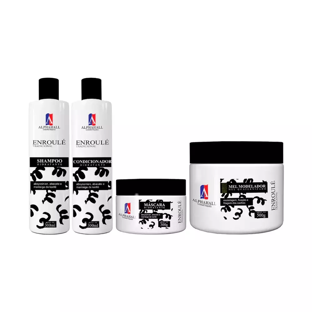 O KIT CONTÉM: - Shampoo Enroulé Modelador (300ml): limpeza suave, removendo impurezas enquanto mantém a hidratação dos fios. - Máscara Hidratante Enroulé Modelador (300g): promove hidratação e nutrição, devolvendo a vitalidade do cabelo, restaura cabelos secos e danificados, deixando os cachos definidos e saudáveis. - Condicionador Enroulé Modelador (300ml): Sela as cutículas e facilita o desembaraço dos fios. - Mel Modelador Enroulé (500g): O Mel Modelador da Alphahall, também conhecido como ?Mel Cola?, é um produto que oferece fixação e definição aos cabelos. Sua fórmula contém mel quaternizado, um ingrediente que ajuda a manter a hidratação e resistência dos fios. Além de proporcionar um acabamento duradouro, o Mel Modelador prolonga o day after, mantendo o estilo e a definição por mais tempo. Ideal para quem busca uma finalização de longa duração com toque suave e hidratado. Pode ser usado em cabelos naturais e orgânicos.